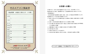 弊社で中古エアコンを取り付けさせていただいたお客様には、1年間の保証をおつけしております。